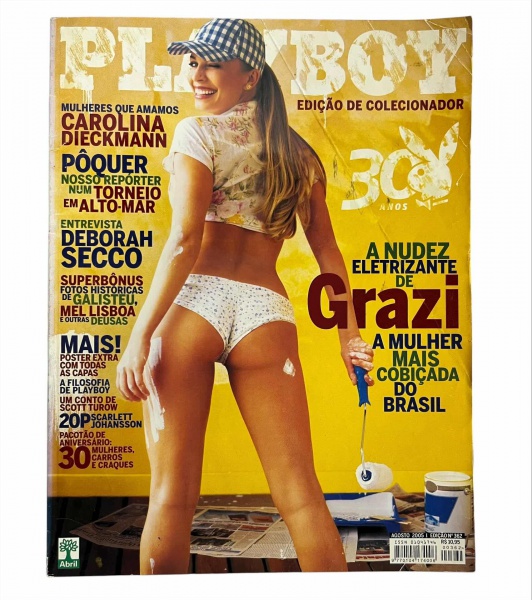 • Revista Playboy Brasil, Edição de Colecionador de Agosto de 2005 (Nº 362), apresentando Grazi Massafera. Em bom estado de conservação, item de colecionador. Marcas do tempo.