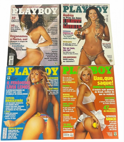 • Coleção de 4 Revistas Playboy Brasil de 2000 a 2004, com capas estreladas por Luciana Coutinho, Andréa Baptista, Vanessa Menga e Lívia Lemos. Edições de colecionador em bom estado geral de conservação, itens de colecionismo/memorabilia nacional. Marcas do tempo.
