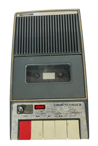 • Gravador de Cassetes Portátil Vintage Crowncorder CTR-9001 (Japão) dos anos 60/70, acompanhado de caixa original e estojo de transporte. Item de colecionador. Sem testes executados, no estado.
