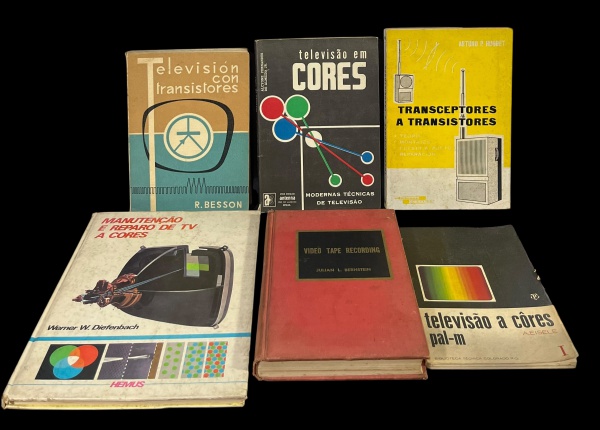 • Lote de 6 Livros Técnicos Antigos sobre Eletrônica, TV (P&B, Cores PAL-M), Transistores e Semicondutores. Marcas do tempo. -dim- 21x28