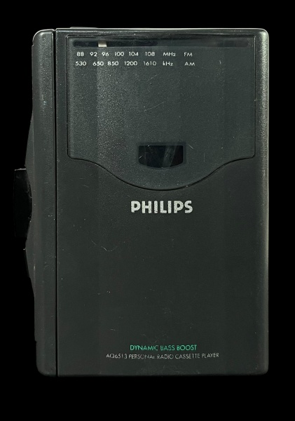 • Toca-fitas portátil Philips modelo AQ6513 com rádio AM/FM, sem testes executados, no estado.