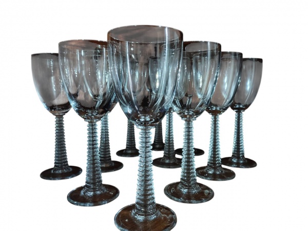 • Lote contendo 10 Taças de Cristal com Hastes Torneadas em Anéis. -dim- 7,5d x 19a.
