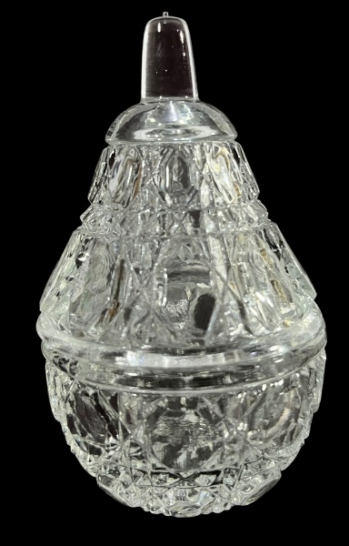 • Bomboniere/potiche antiga produzida em cristal lapidado, com tampa e base detalhada em padrão de estrela. Peça decorativa de época, ideal para colecionadores e amantes de antiguidades. Marcas do tempo. -dim- 6d x 10a