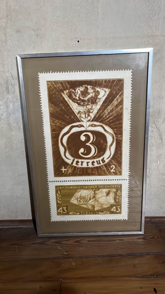 • Quadro com número 3 e dizeres em latim em vidro com arestas metálicas - dim - 50x80x4