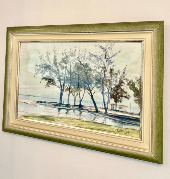 • Quadro paisagem de costa com árvores e casa ao fundo , ass C.i.d - dim - 74x54