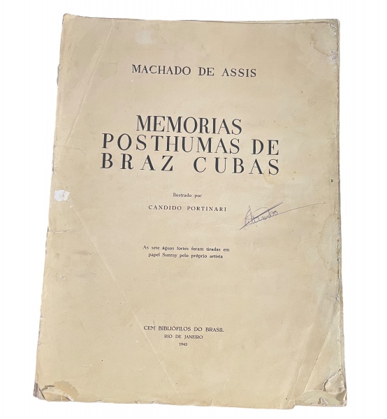 • Machado de Assis, Memórias Pósthumas de Braz Cubas, 1943. Edição princeps ilustrada com 7 águas-fortes originais de Candido Portinari, tiragem limitada da Sociedade dos Cem Bibliófilos do Brasil. Marcas do tempo. -dim- 27x37.