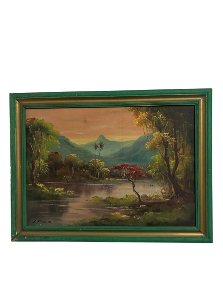 • J . Polig - pintura com paisagem e moldura de madeira - dim - 76x57- RETIRADA POR CONTA DO COMPRADOR NO BAIRRO DO ESTÁCIO