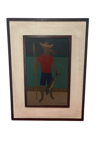 • Djanira da Motta e Silva (Avaré, São Paulo, 1914 - Rio de Janeiro, Rio de Janeiro, 1979), `Pescador `. Serigrafia colorida sobre papel. Assinada  , fundo de eucatex, não autenticado- dim - 23x35