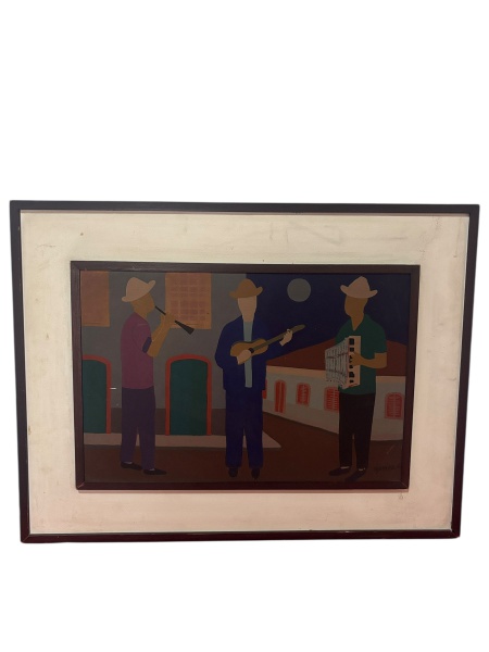 • Djanira da Motta e Silva (Avaré, São Paulo, 1914 - Rio de Janeiro, Rio de Janeiro, 1979), `Serenata `. Serigrafia colorida sobre papel. Assinada  , fundo de eucatex, não autenticado - dim - 48x31