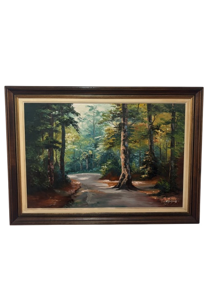 • Maria Augusta - O.S.T - paisagem de floresta com moldura de madeira - dim - 80x52