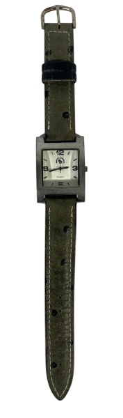 • Relógio de pulso masculino Canyon Timepiece Swiss Quartz, caixa quadrada em aço inoxidável e pulseira verde-oliva. Item necessitando revisão/manutenção. No estado.