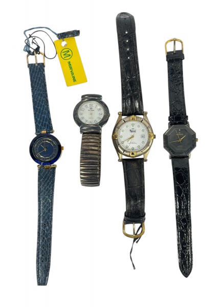 • Lote de 4 Relógios de Pulso, incluindo modelos Mirvaine, todos de quartzo, em estado variado de conservação, ideais para coleção, peças ou restauro. No estado.