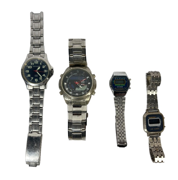 • Lote c/ 4 Relógios de Pulso, Incluindo Technos, Atlantis e Citizen Vintage Digital. Itens necessitando revisão/manutenção. No estado.
